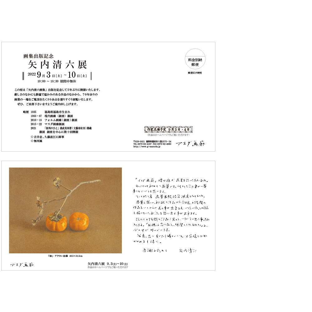 この度は「矢内清六画集」出版を記念して2年ぶりに開催いたします。