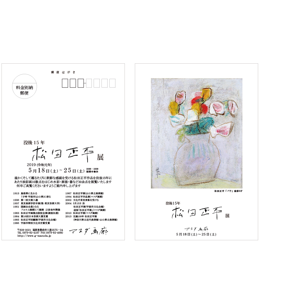 温かくそして鑑るたびに新鮮な感銘を受ける松田正平作品を没後15年にあたり油彩画10数点をはじめ水彩・素描・書など30余点を展覧いたします