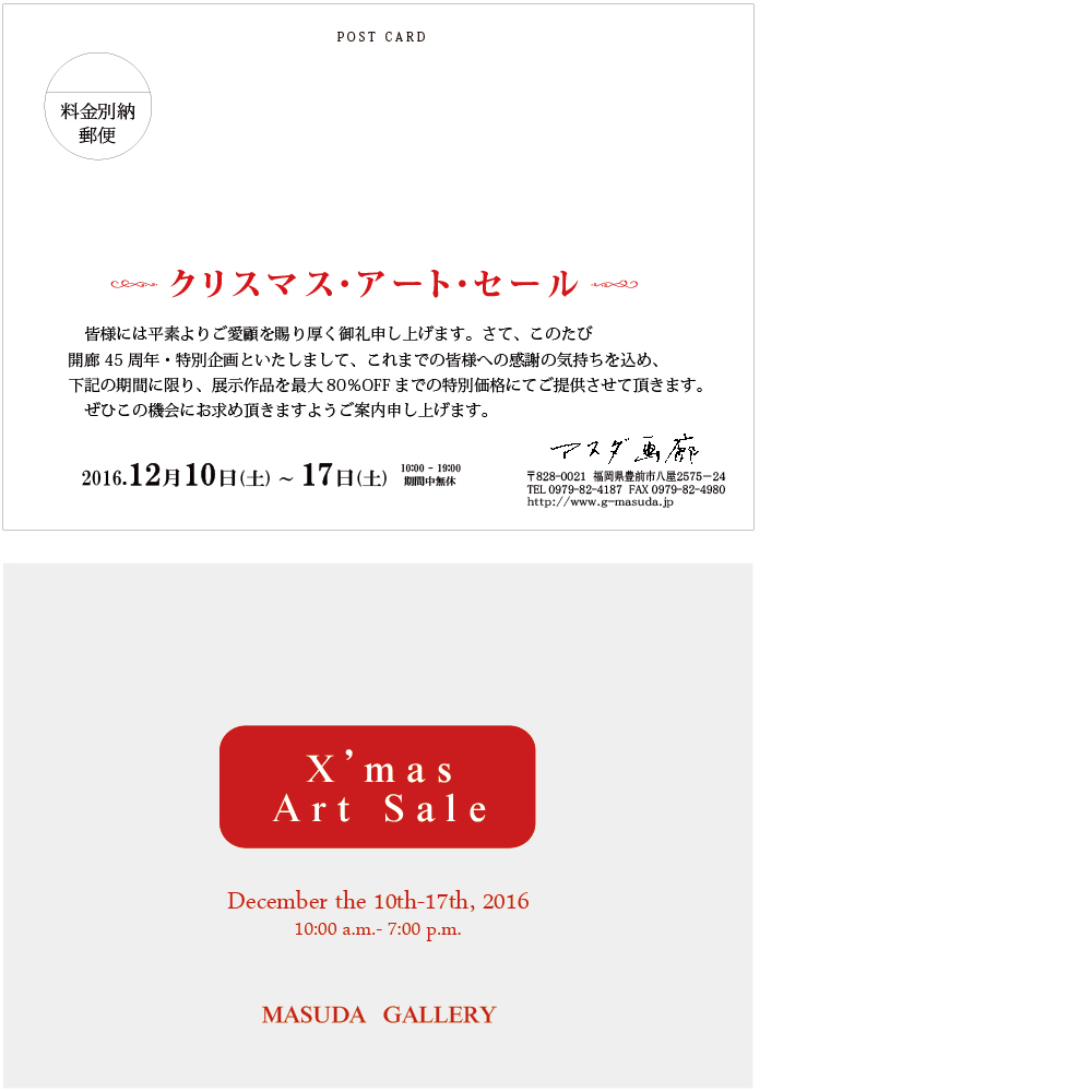 <開廊45周年・特別企画> クリスマス・アート・セール